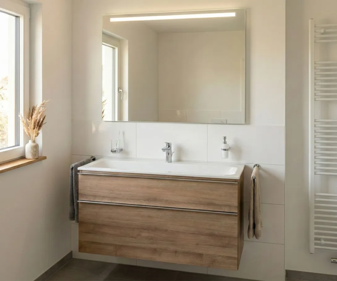 Zum Einsatz kommen bewährte Gewerke: Sanitär & Heizung für die Leitungsverlegung, Vorwandtechnik und gehobene Sanitärkeramik. Fliesenleger, Maler, Elektriker und Schreiner realisieren ein Bad, das Funktionalität und Design harmonisch verbindet – genau auf Ihre Wünsche zugeschnitten.