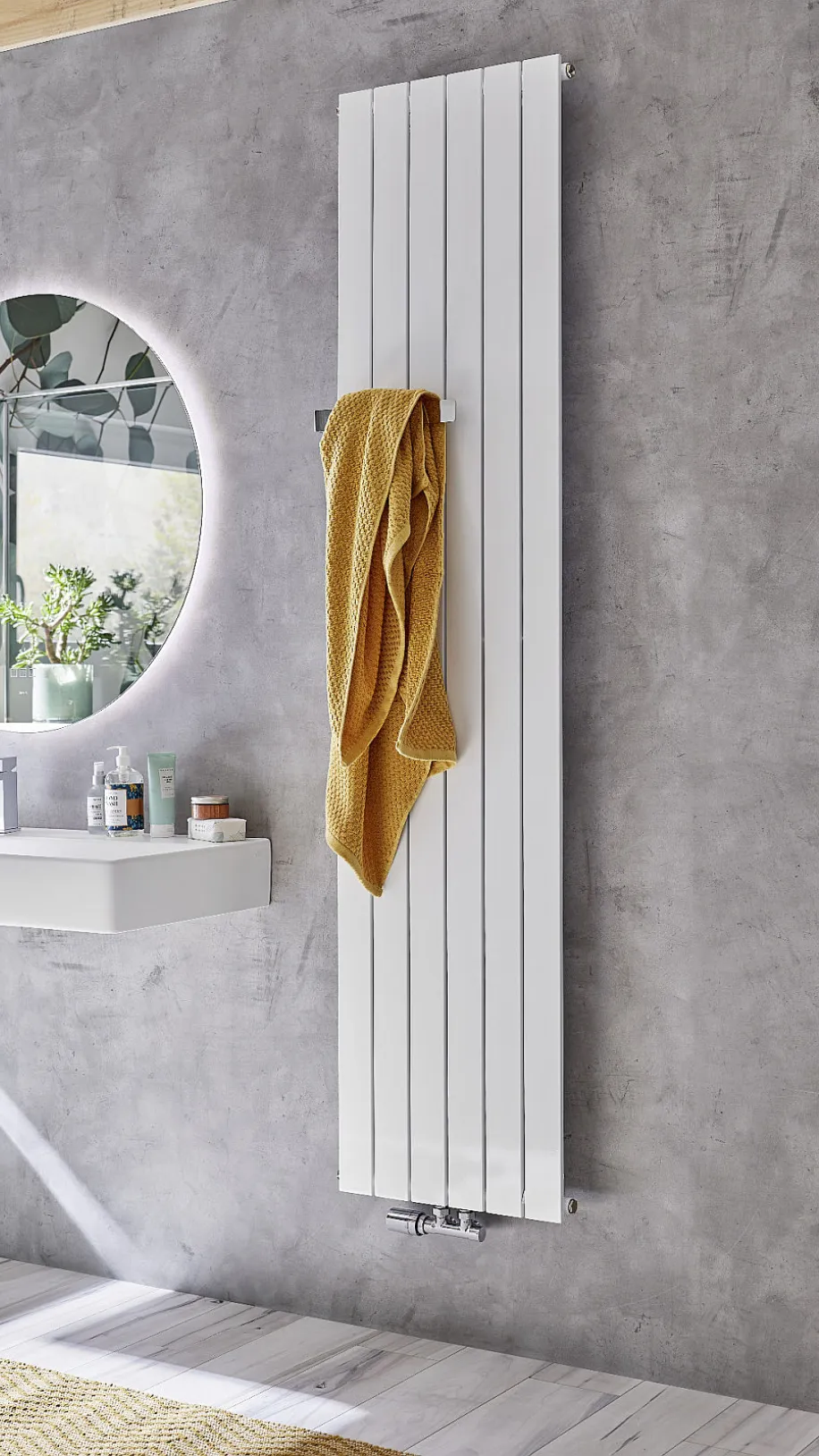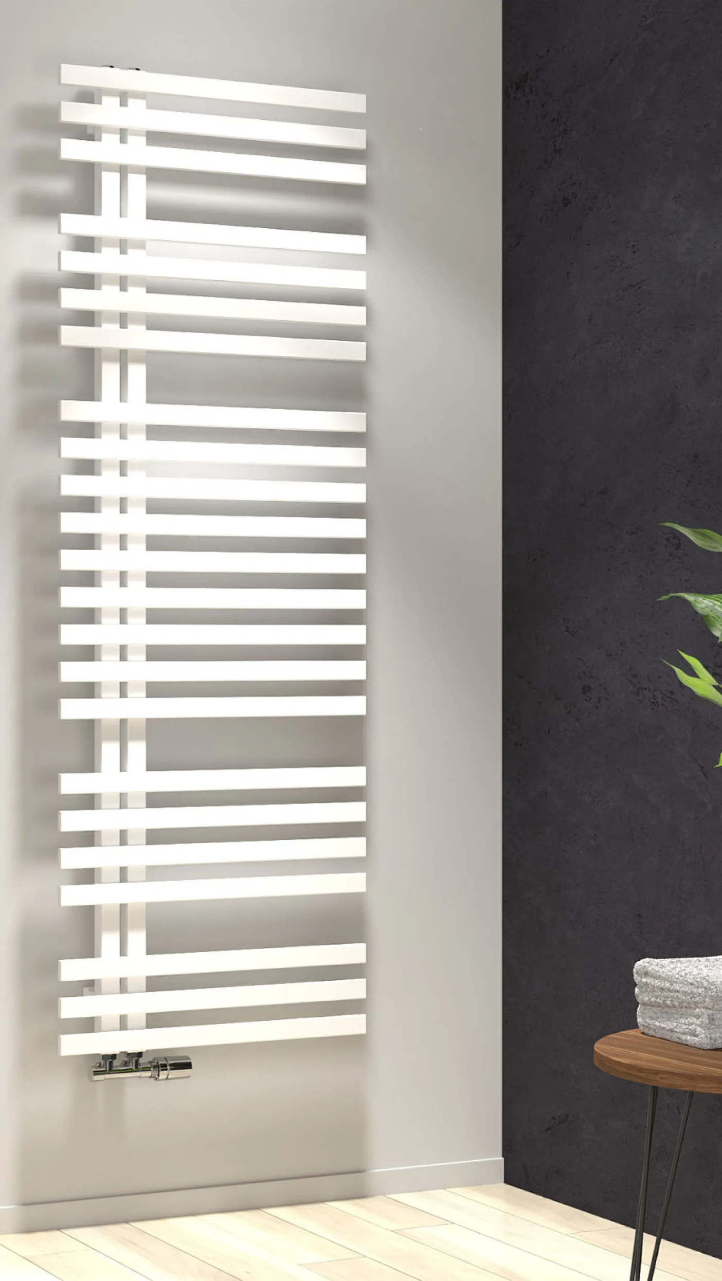 Den Designheizkörper Yenga gibt es jetzt auch als Plus-Modell. Er verfügt über herausstehende Heizlamellen, die das Aufhängen und Vorwärmen von Handtüchern ermöglichen. Sein markanter Look macht ihn zu einem echten Design-Element. Mit zwei unterschiedlichen Größen passt er in jedes Badezimmer und rundet so Ihr Wohlfühlerlebnis perfekt ab.